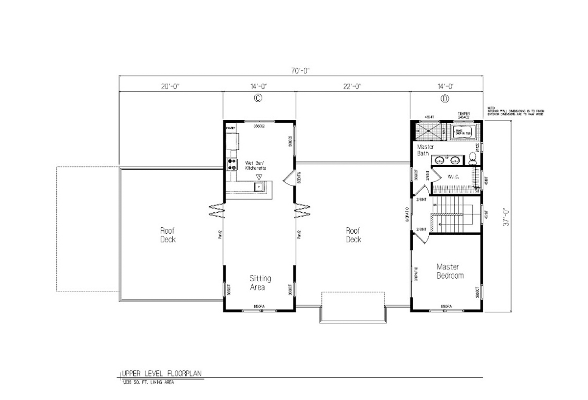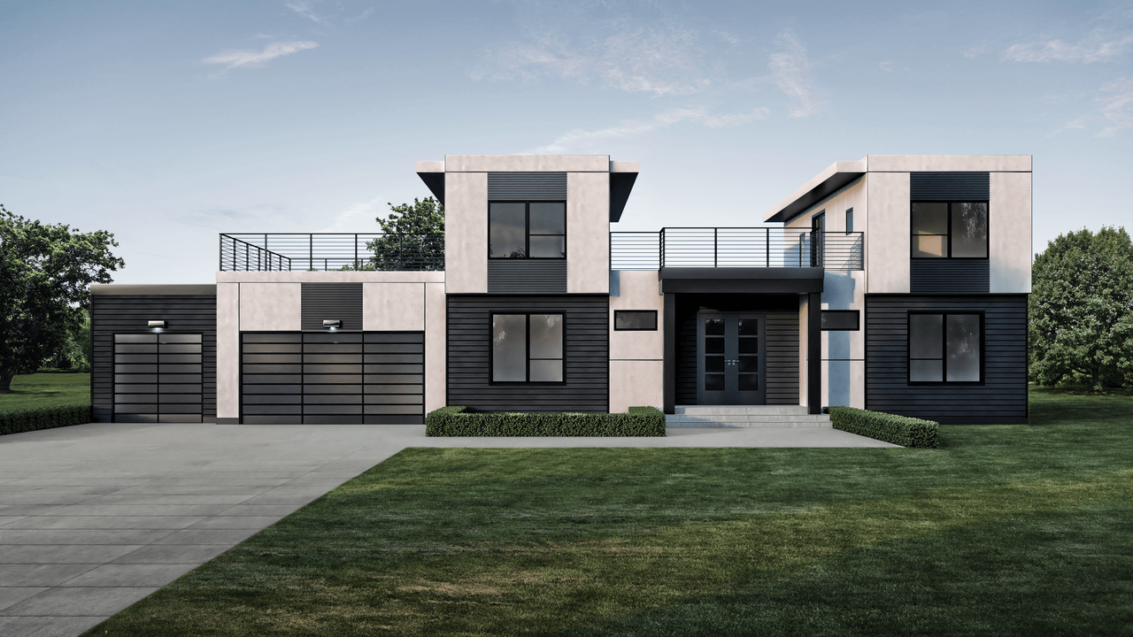 Model 30 – Customizable modern home available in 3 versions all with the great room concept with indoor/outdoor features including panoramic door access to large upper level roof top decks, with kitchen and great room on main level and master bedroom w/ensuite and kitchenette with sitting area located on upper level.