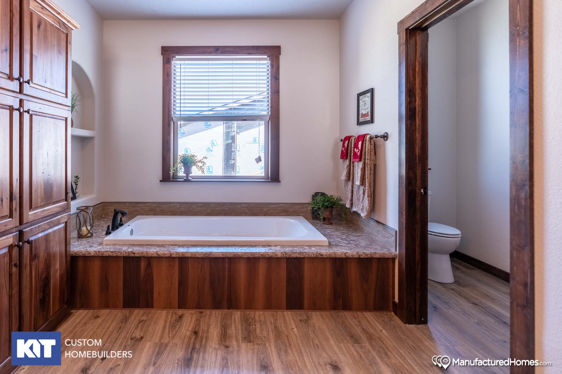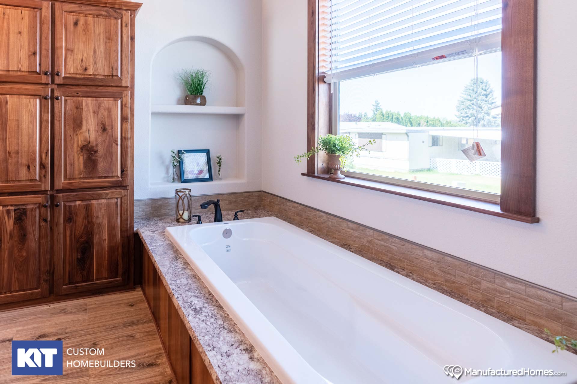 Bathroom Bathtubs: Cab Ply on Front of Master Deluxe Tubs / 60” 1 Piece Fiberglass Tub/Shower in Guest Bath