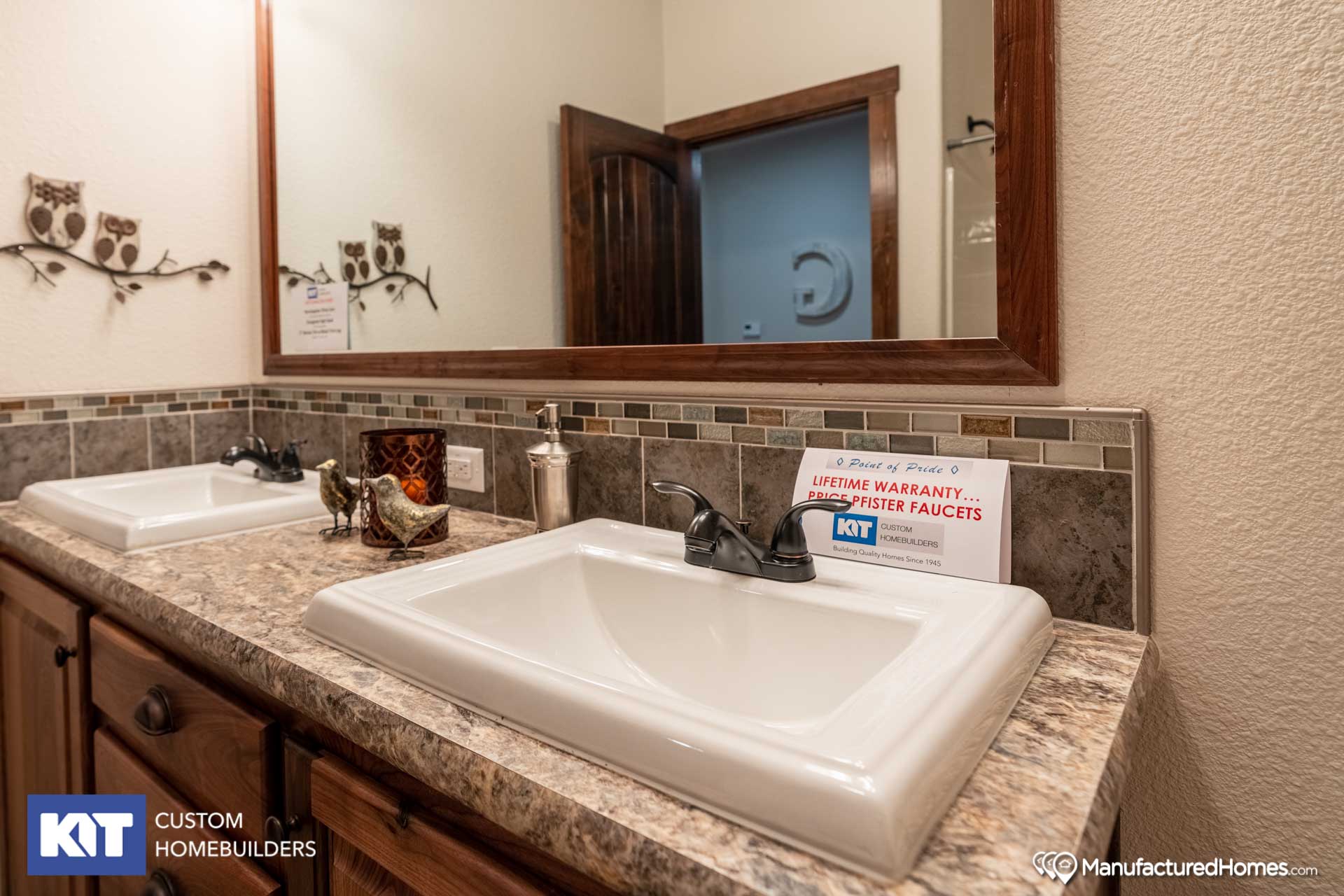 Additional Specs: Satin Nickel Faucets—Price Pfister / Frost Free Exterior Faucet Near Rear Door / Electrical Boxes Nailed to Studs / Toe-kick Registers in Kitchen & Bathrooms / Conduit From Panel Box for Air Ready/Heat Pump Ready / Rocker Light Switches Throughout