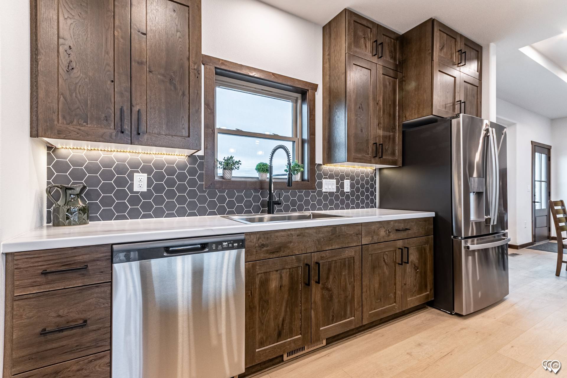 Utility Cabinets: Full Access cabinetry throughout / Full Overlay door design / Flat center panel cabinet doors in Modern Farmhouse and Contemporary packages, raised center panel in Rustic Package