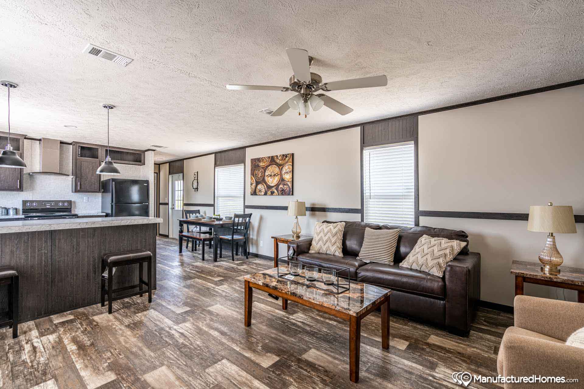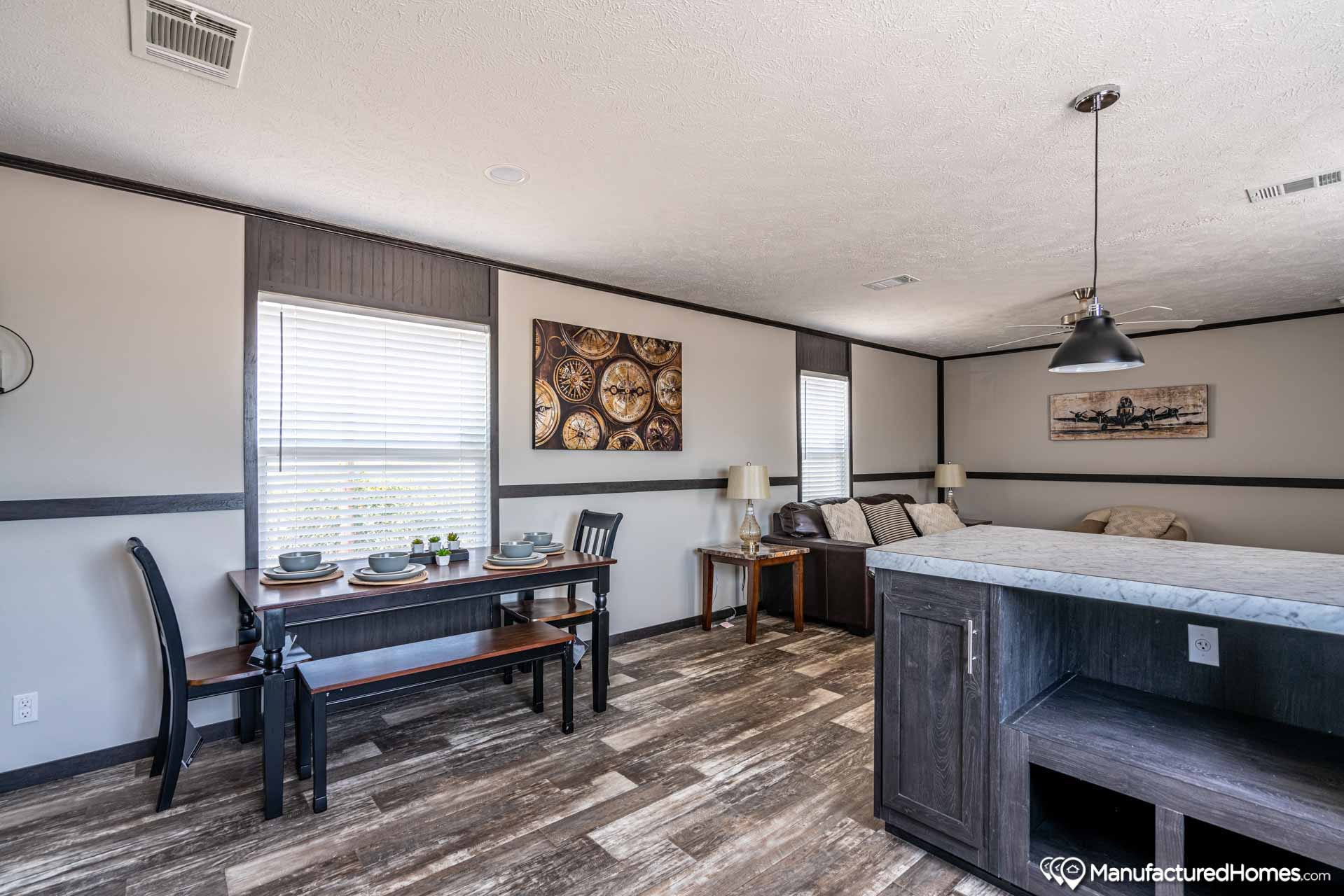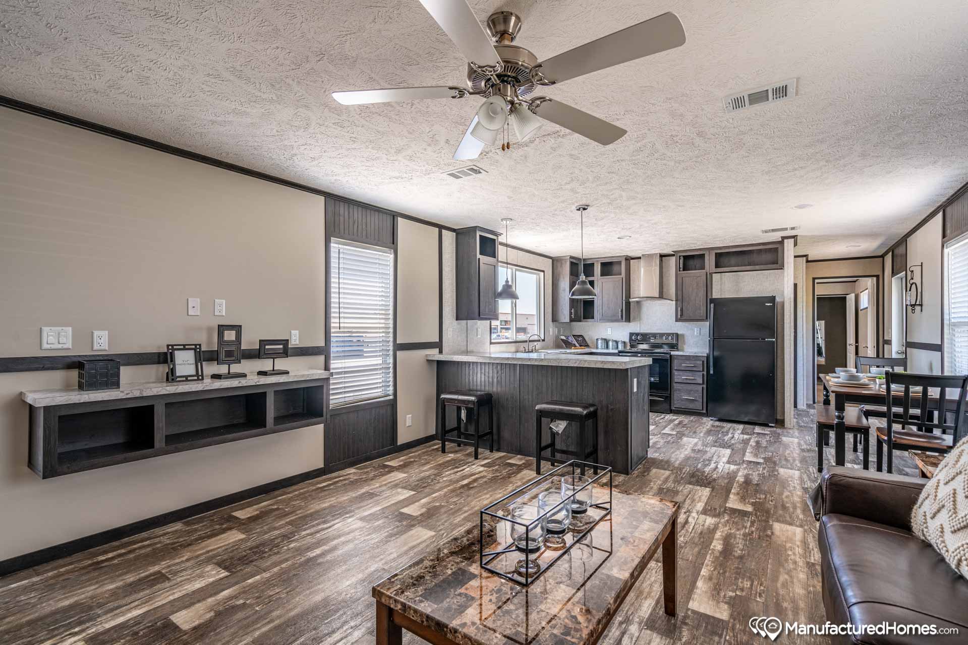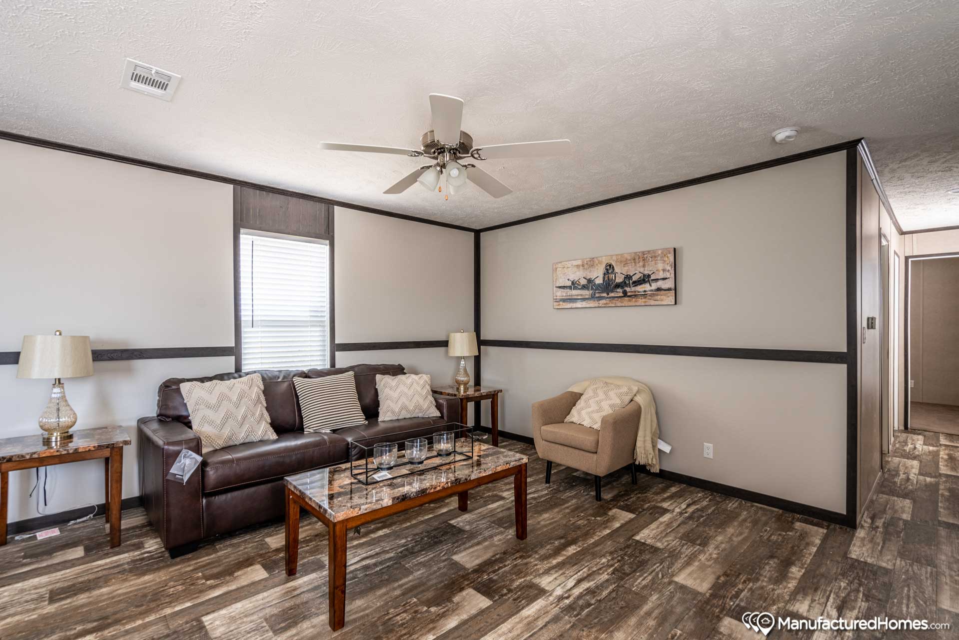The Cavco American Dream 16763D spans 1,165 sq ft with 3 bedrooms and 2 baths, maximizing comfort in a compact footprint. The open-concept living area seamlessly blends with a bright kitchen and dining space, ideal for everyday meals or weekend gatherings. A thoughtfully designed master suite creates a sense of privacy, while secondary bedrooms adapt easily for family, guests, or home office use. The Cavco American Dream 16763D brings practical elegance to modern living with efficient design and style.