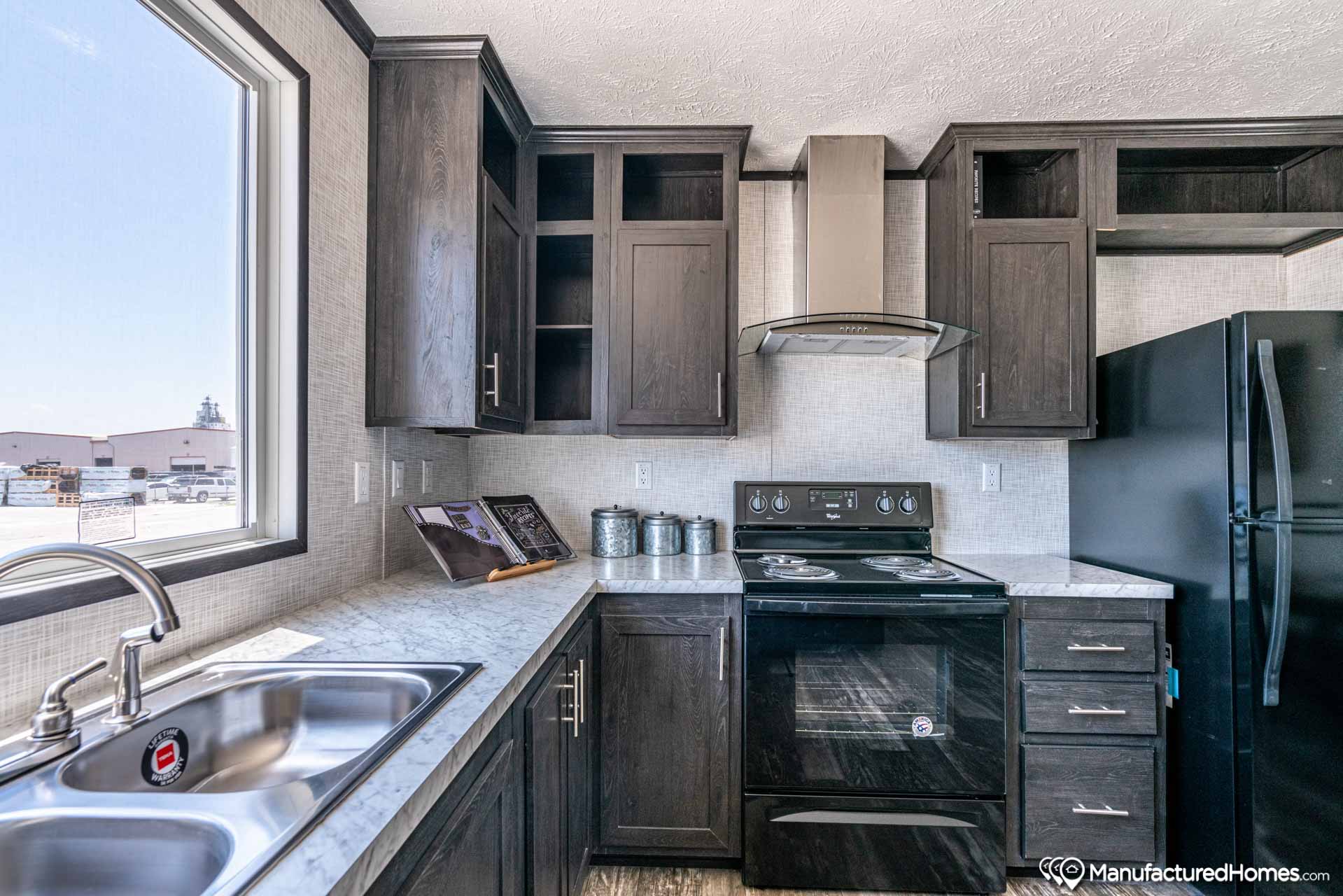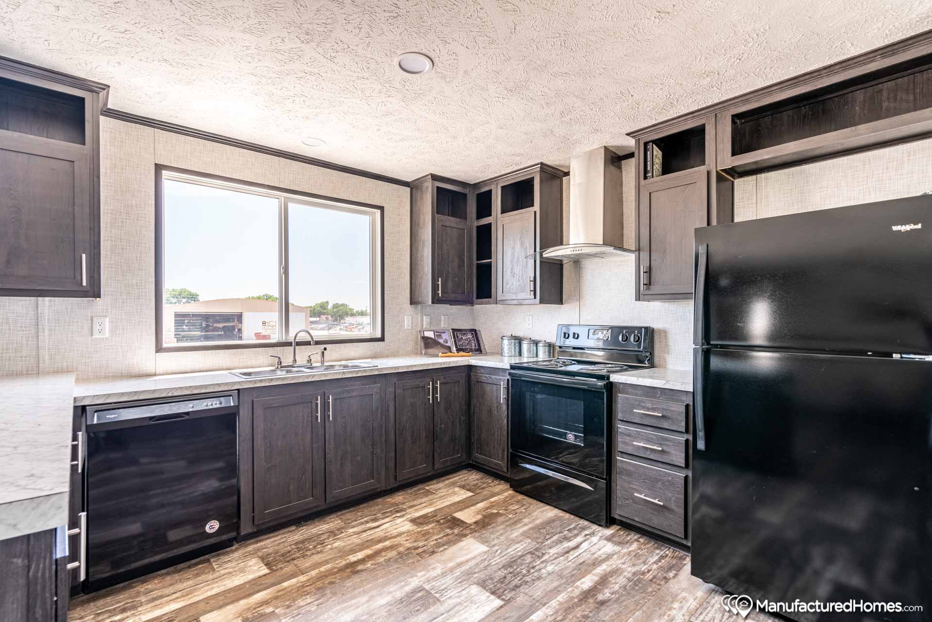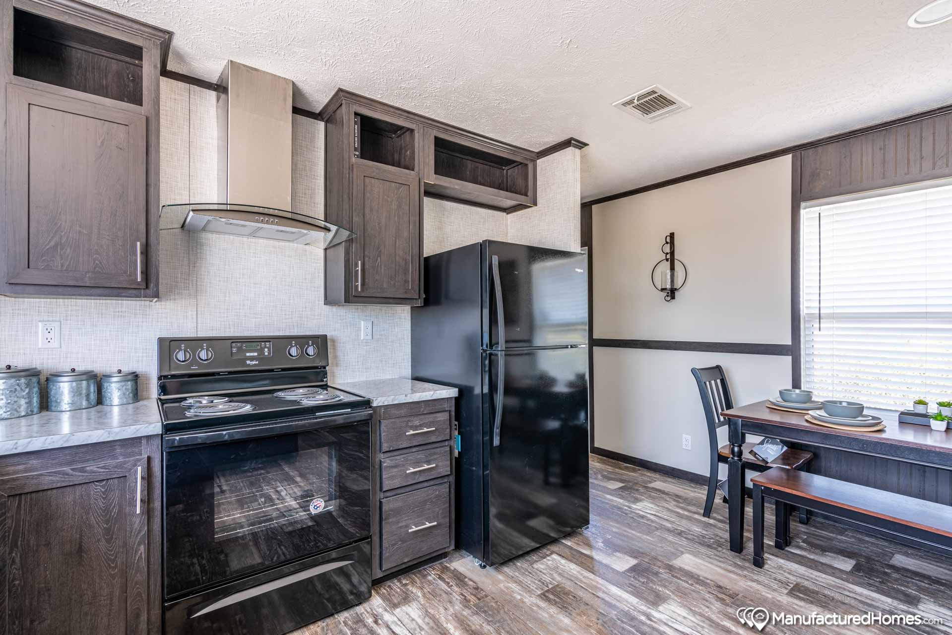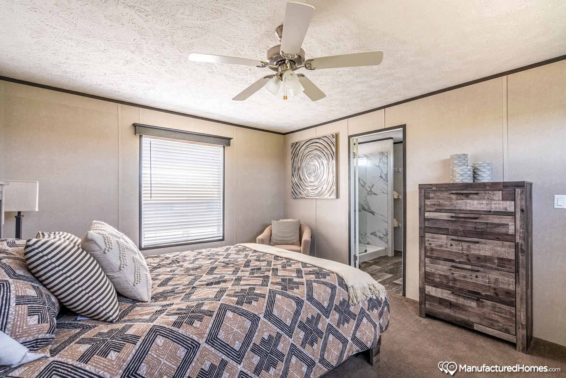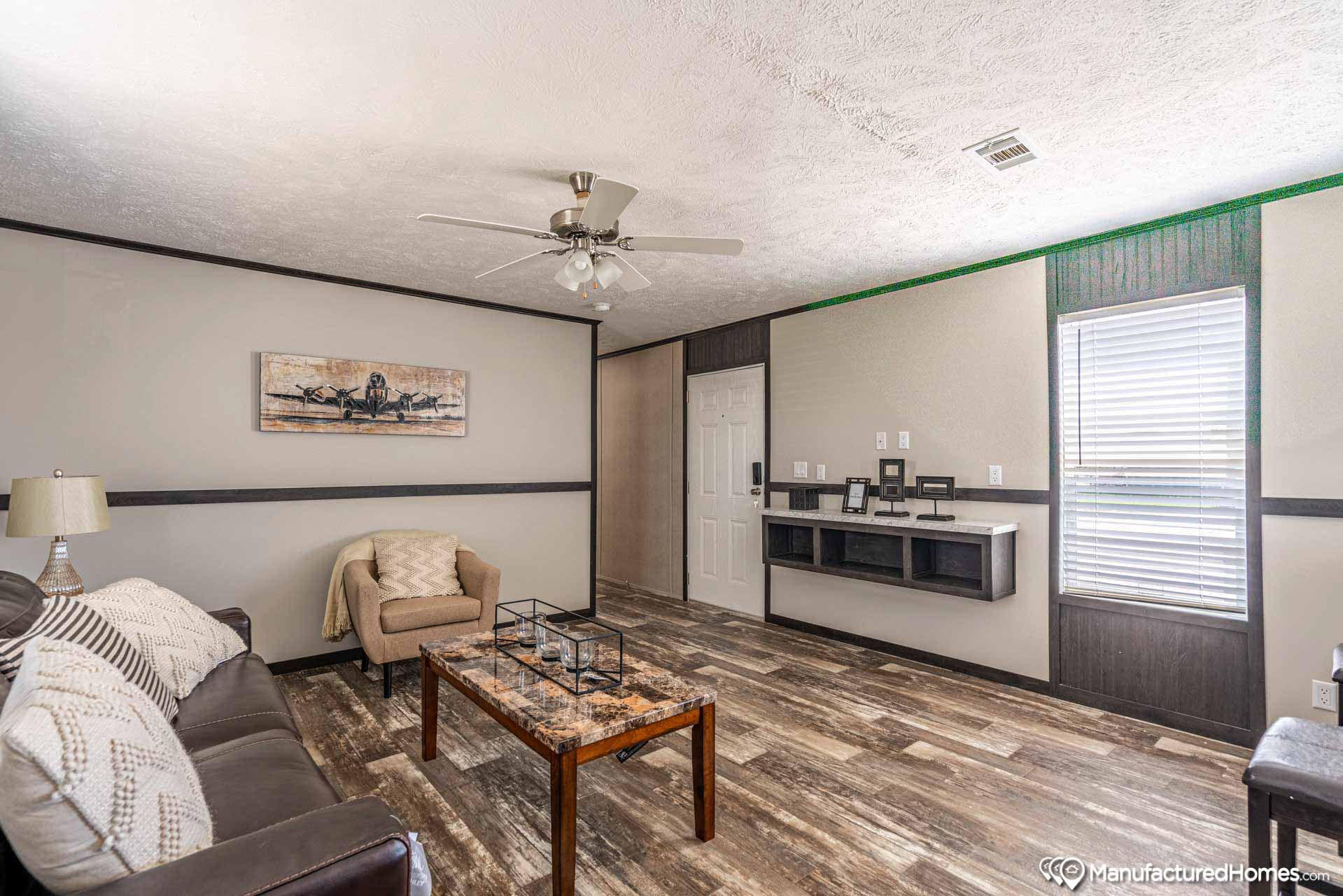 The Cavco American Dream 16763D spans 1,165 sq ft with 3 bedrooms and 2 baths, maximizing comfort in a compact footprint. The open-concept living area seamlessly blends with a bright kitchen and dining space, ideal for everyday meals or weekend gatherings. A thoughtfully designed master suite creates a sense of privacy, while secondary bedrooms adapt easily for family, guests, or home office use. The Cavco American Dream 16763D brings practical elegance to modern living with efficient design and style.