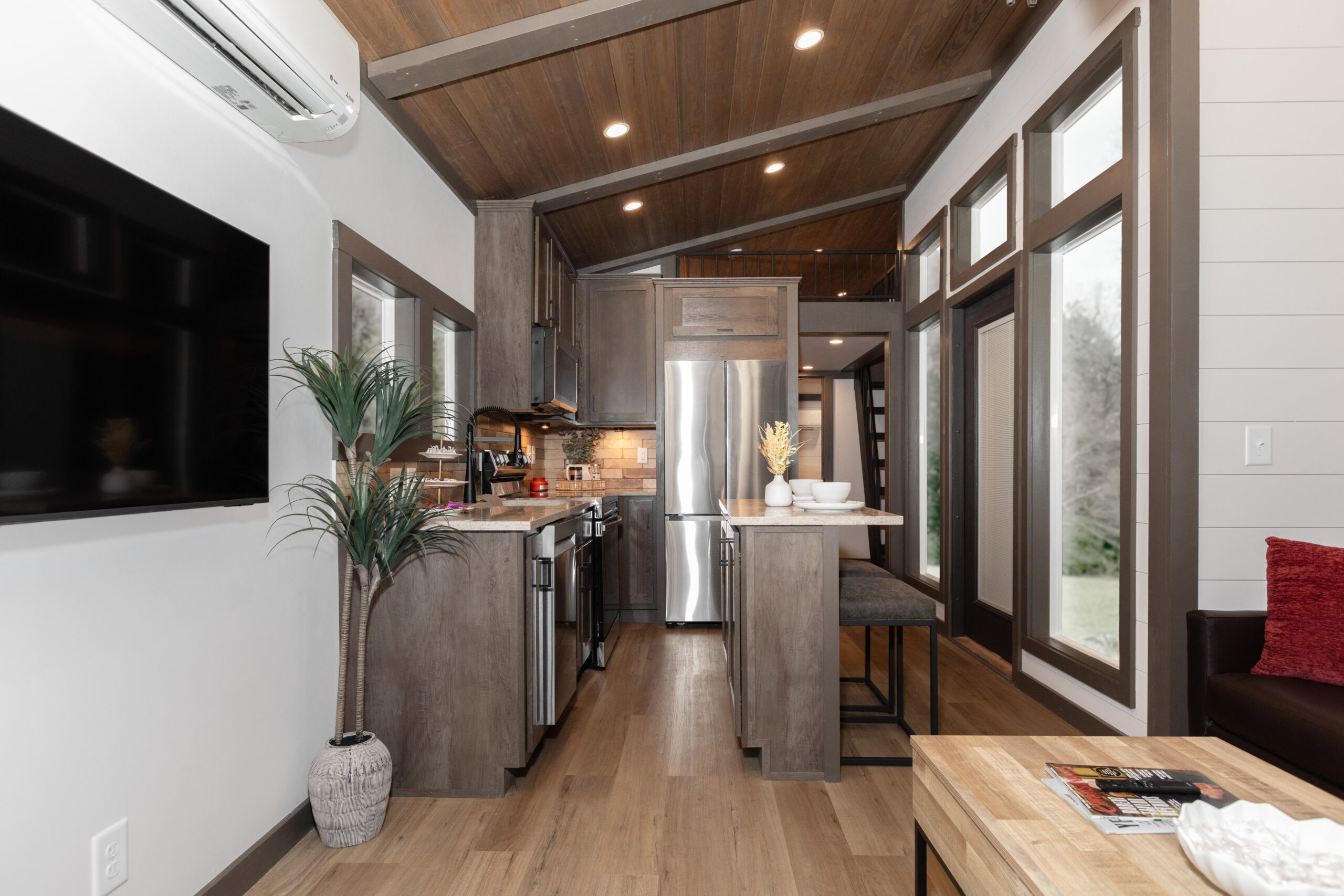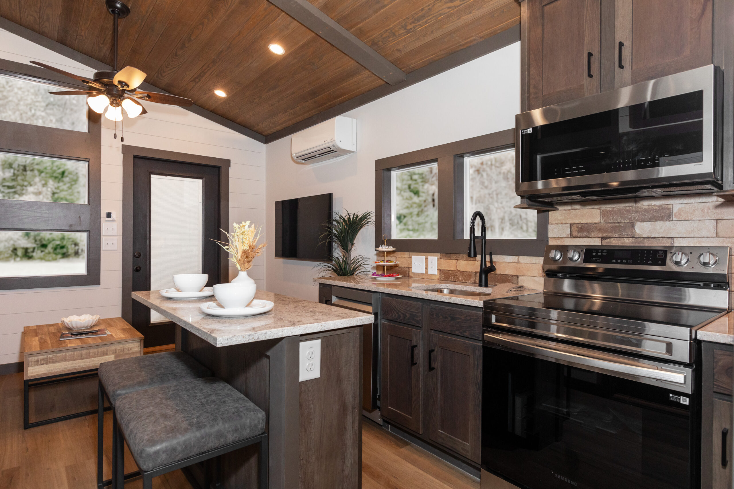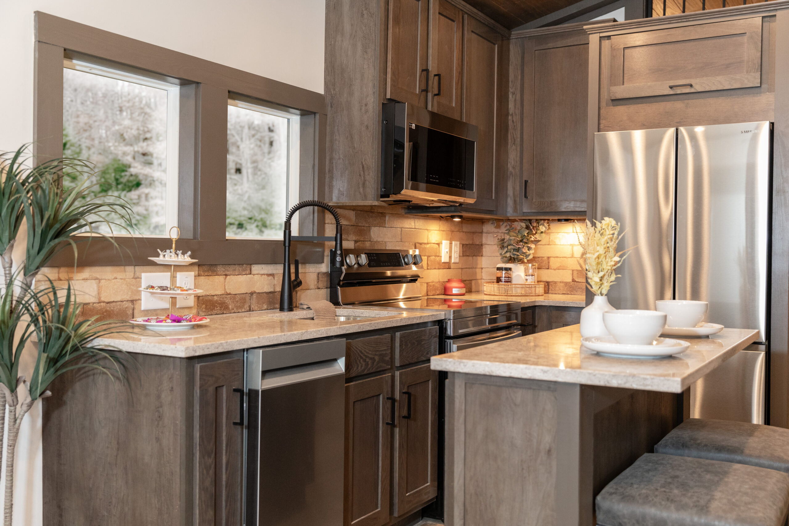 The Skyway–a home with a view! This beautiful park model has different-sized windows that let the natural light in. You’ll find unique views in almost every room as every detail of this floor plan has been carefully designed and constructed.