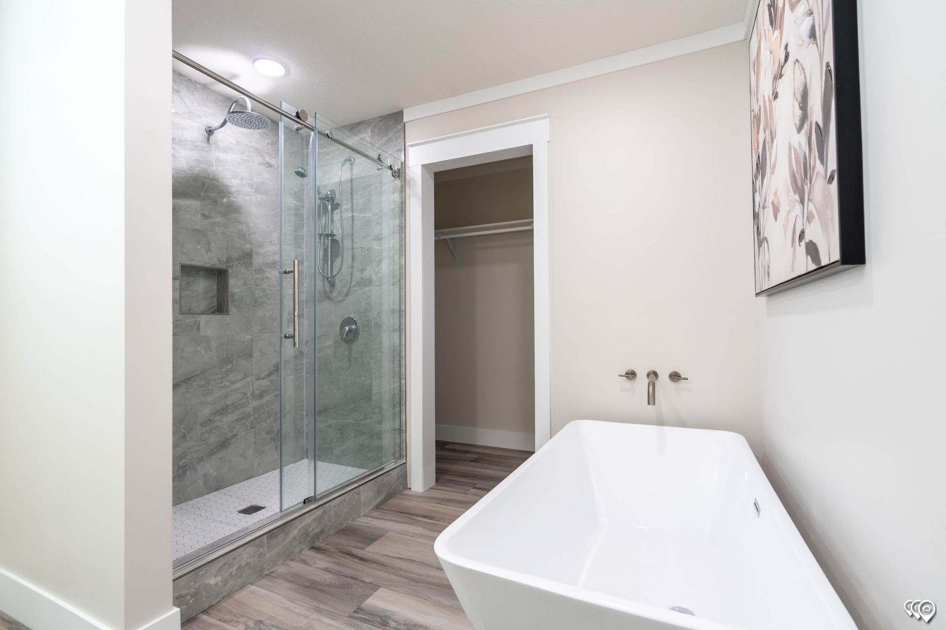 Bathroom Shower: 60" Walk-in Shower and Pedestal Tub in Master Bath / Drop-in and Pedestal Tub Option / 54" Tub/Shower Combo in 2nd Bath