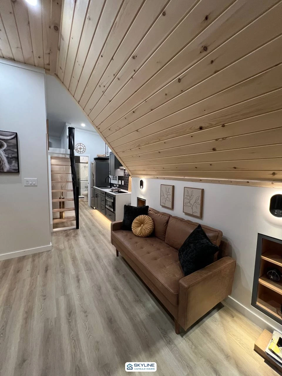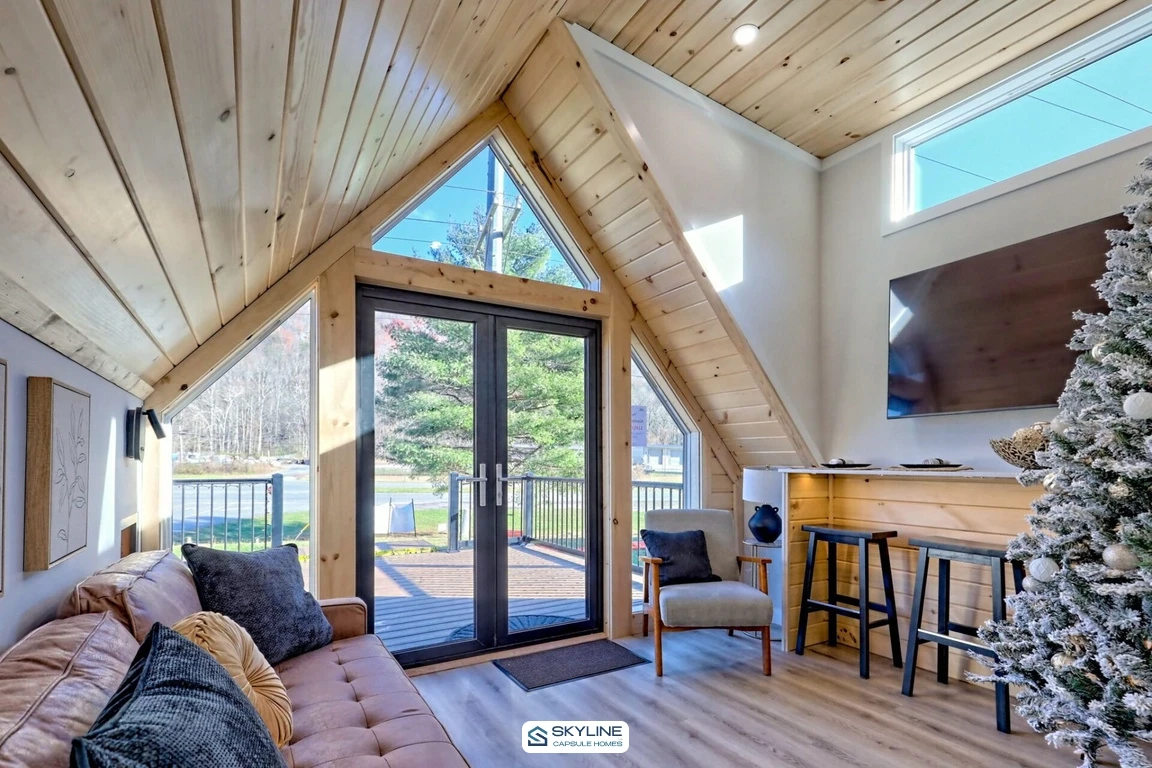 The Great Outdoor Cottages / A-Frame 2300-L built by Great Outdoor Cottages blends rustic charm with smart design in a cozy getaway. With 399 square feet, 2 bedrooms, and 1 bathroom, The A-Frame 2300-L makes every inch count. The bright living area opens to a compact kitchen, creating a warm space to relax after a day outside. A private bedroom and fun bunkroom offer comfortable sleeping options for family or guests. Large windows and inviting style make it feel bigger than it looks. The A-Frame 2300-L is the perfect retreat for simple living and big adventures.