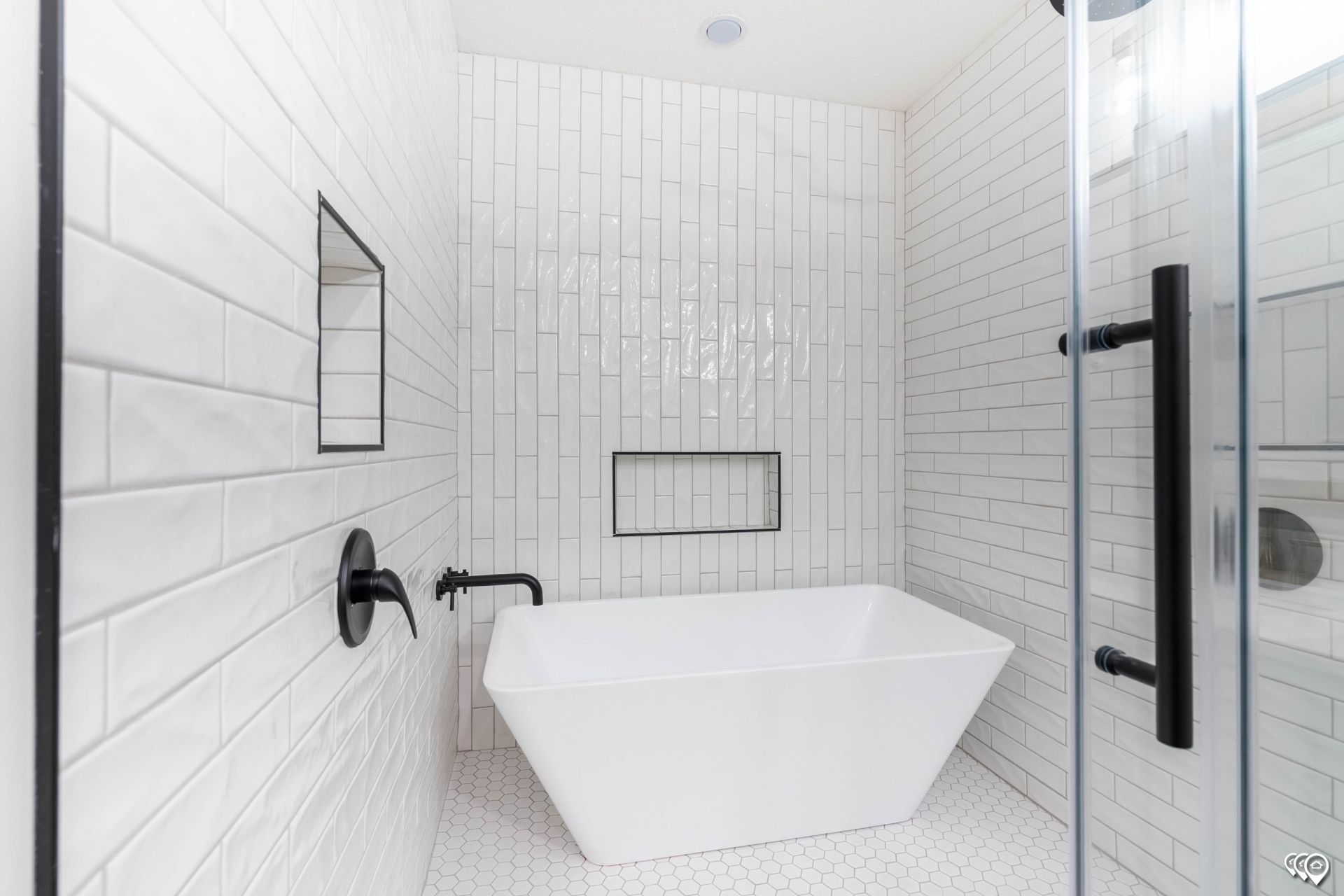Bathroom Shower: 60" Walk-in Shower and Pedestal Tub in Master Bath / Drop-in and Pedestal Tub Option / 54" Tub/Shower Combo in 2nd Bath