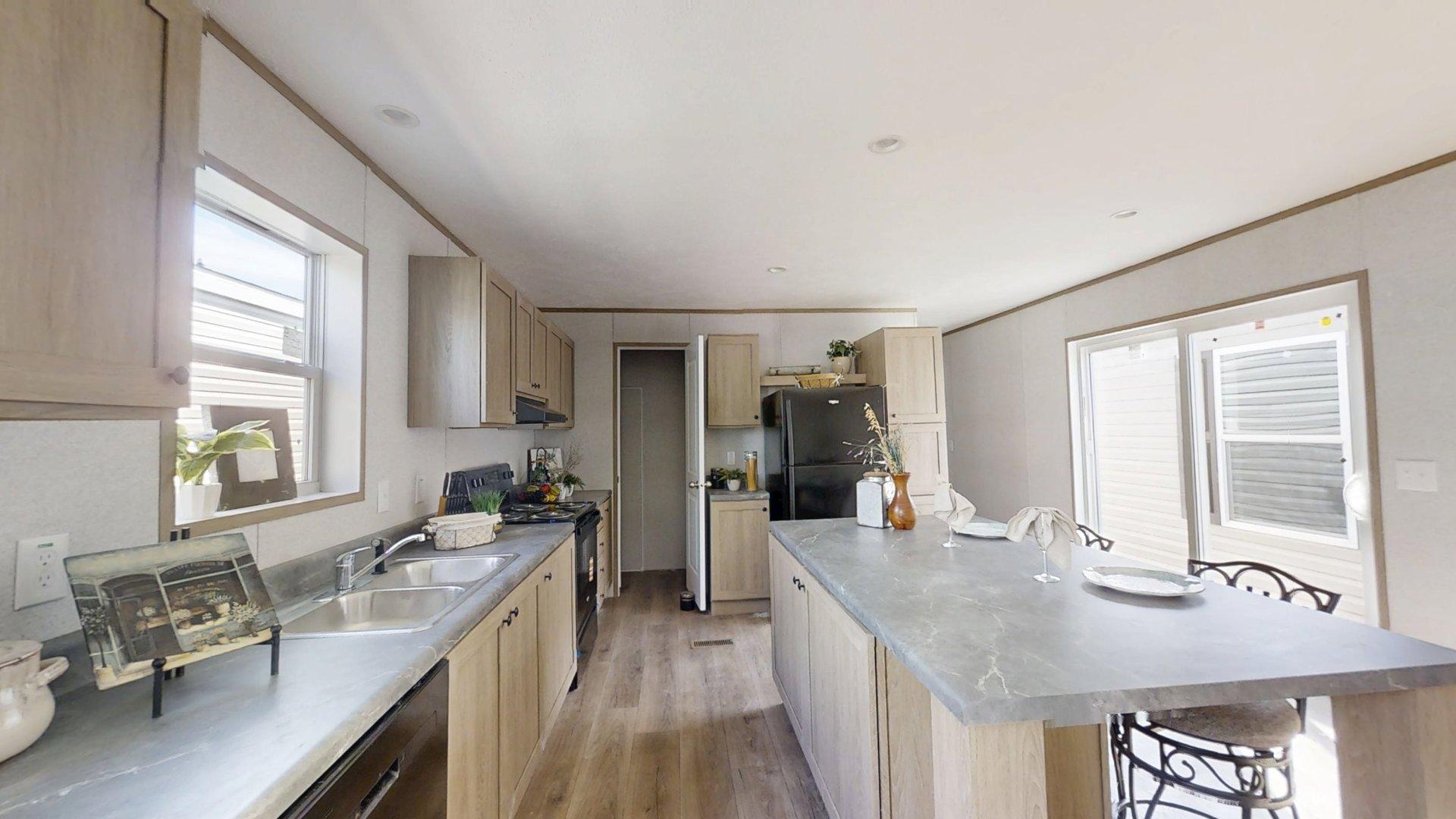 The Prime Series / Monte 1676H32P06 built by Champion Homes showcases a well-planned 1,153-square-foot layout that brings comfort and efficiency together. The Monte 1676H32P06 features 3 bedrooms and 2 bathrooms, with a spacious living room flowing into a practical kitchen and dining area. The primary suite offers added privacy, while the secondary bedrooms are arranged conveniently near the hall bath. This inviting design provides a balanced, easy-living feel for everyday life.