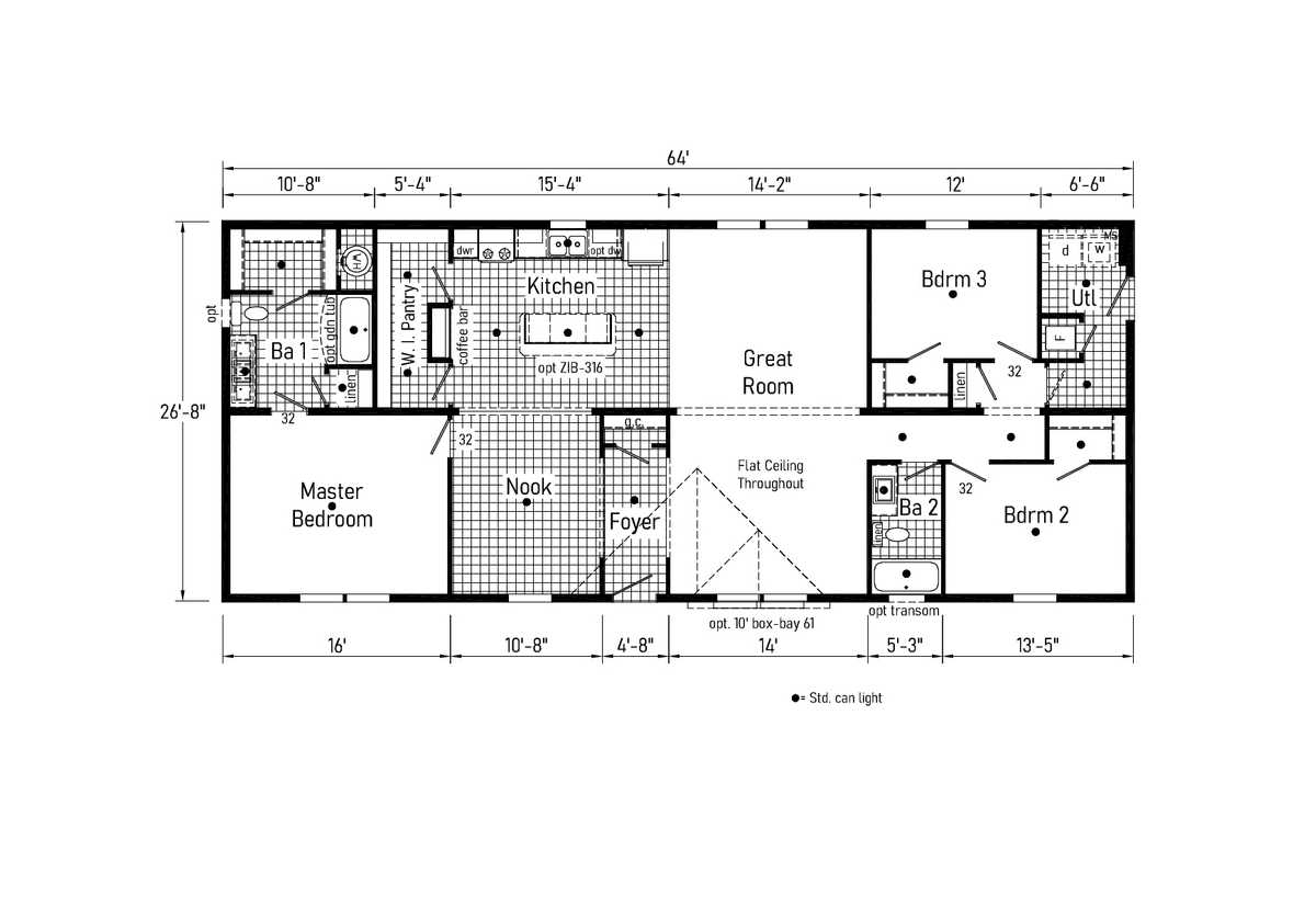 Baths: 2 W x L: 28' 0" x 64' 0"