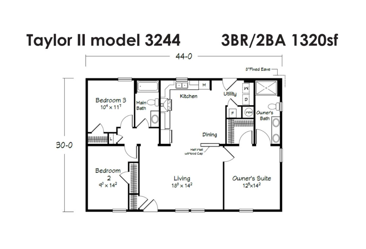 Baths: 2 W x L: 30' 0" x 44' 0"