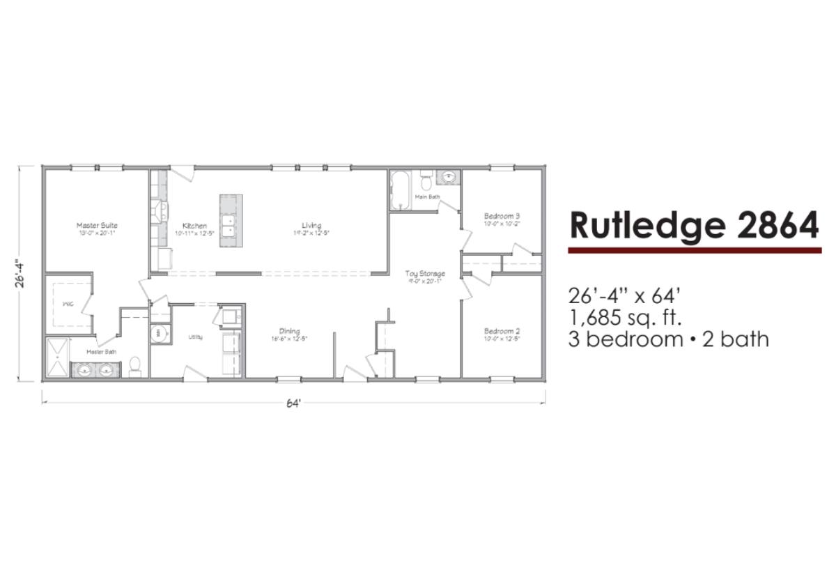 Baths: 2 W x L: 26' 4" x 64' 0"
