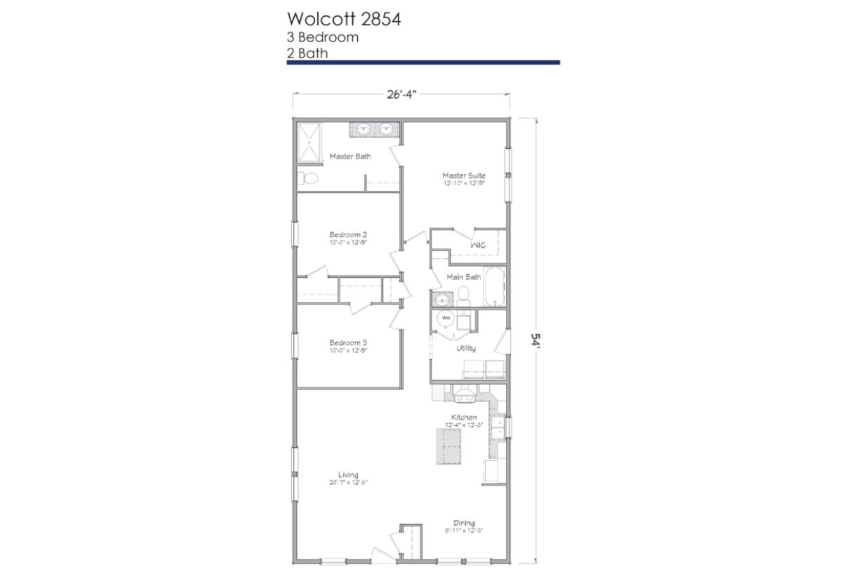 Baths: 2 W x L: 26' 4" x 54' 0"