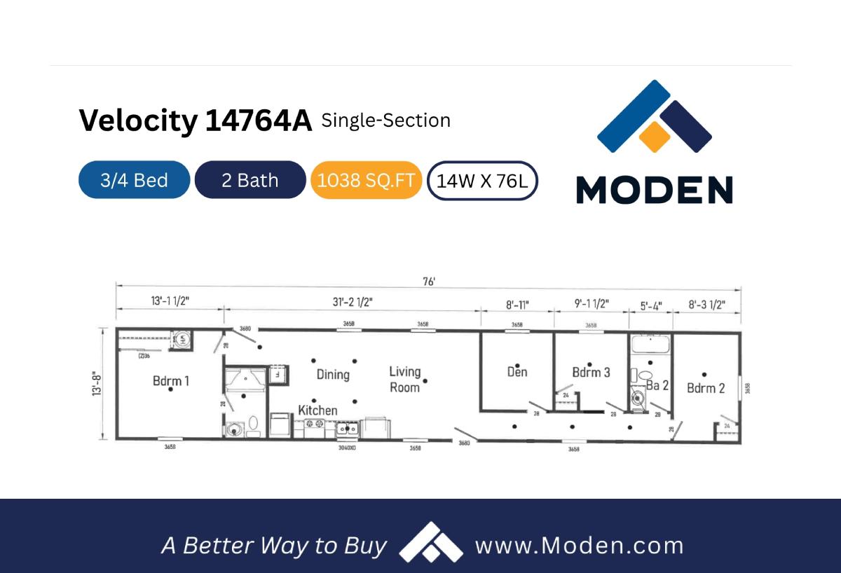 Baths: 2.00 W x L: 14' 0" x 76' 0"